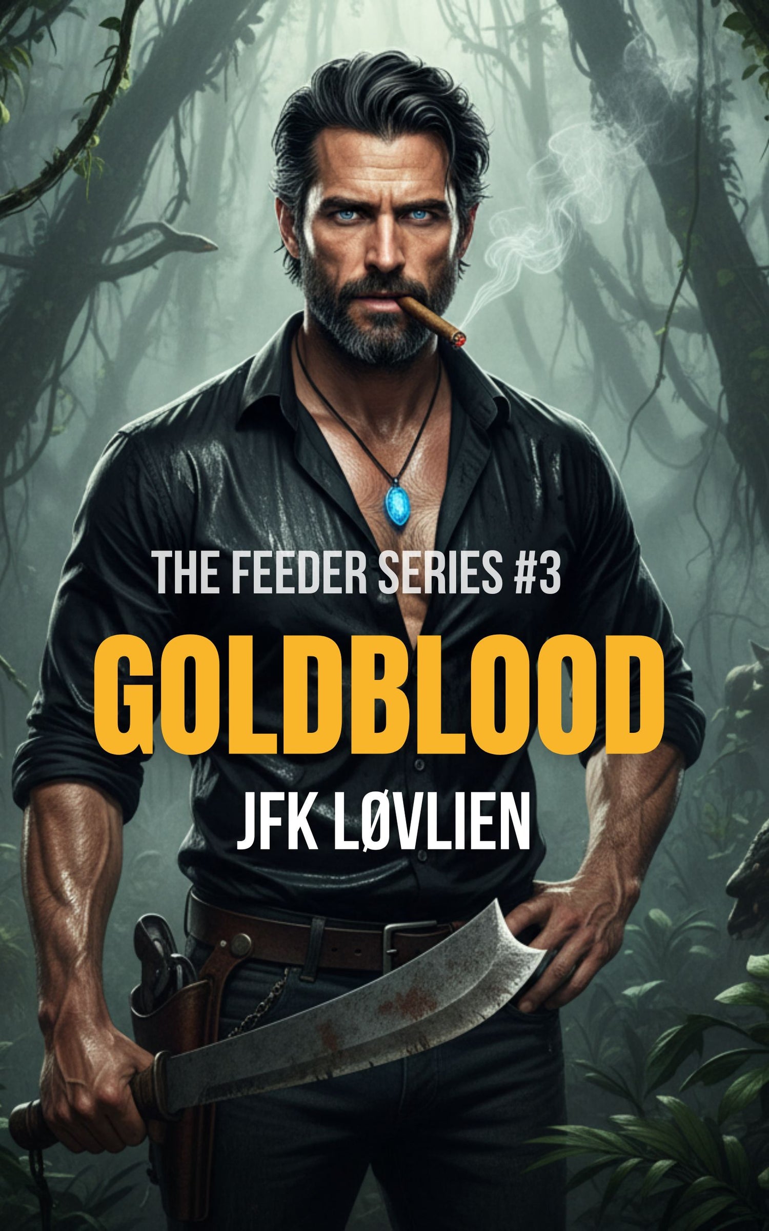 Goldblood by JFK Løvlien book release banner, Luxe Noir thriller available on Amazon October 25